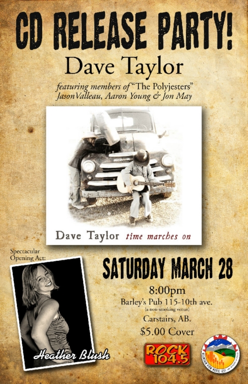 March 28, 2009 Barleys Pub Carstairs OH YEA BABY..... The big release show is coming. March 28 at Barley's Pub In Carstairs. Heather Blush is gonna open up the show! SHE IS AWESOME! Members of the Polyjesters will be backing me up!